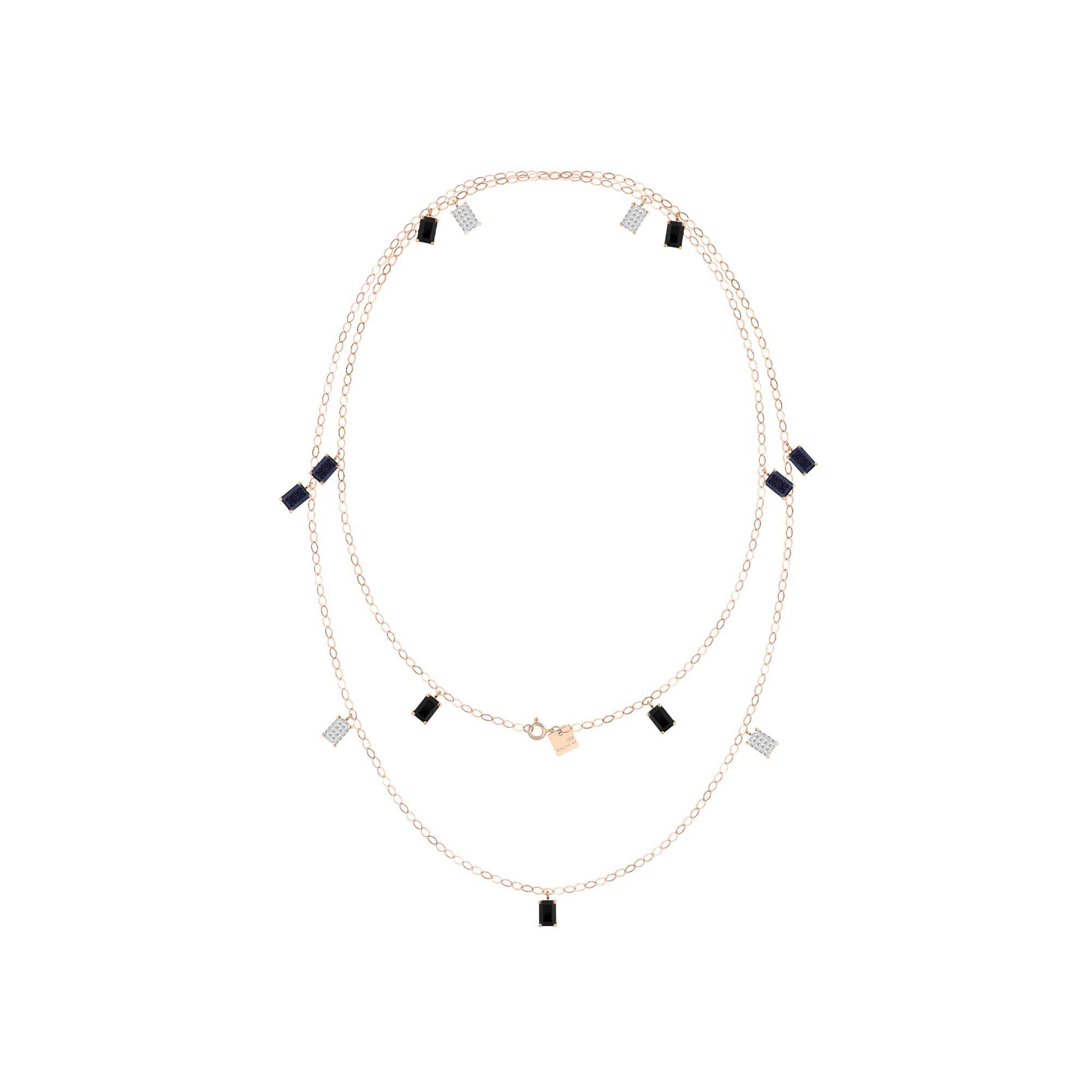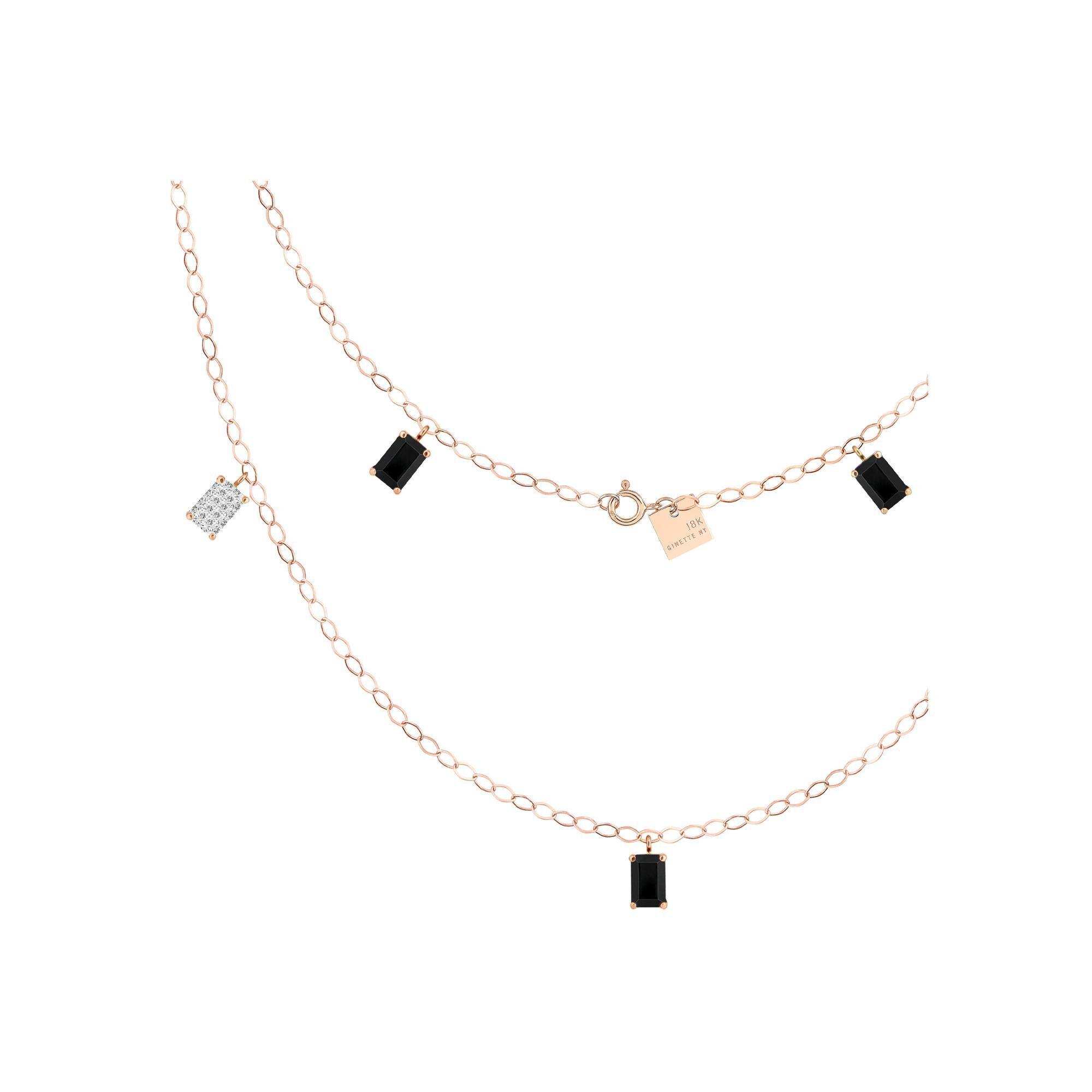 Ginette NY NY Midnight lange ketting, roségoud, onyx, blauw zandsteen en diamanten